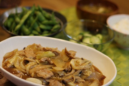・キャベツとたまねぎと豚肉としめじのオイスター炒め煮