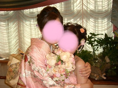 さて、後から会場入りしたばし子と両親は、着付けとヘアセットを済ませて準備万端。