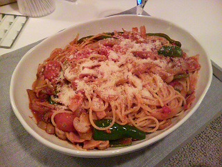 今日の夕飯は自炊のナポリタンだって!