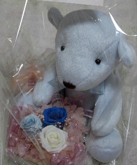 まゆたんから、婚約祝いのクマさんとプリザーブドフラワー!