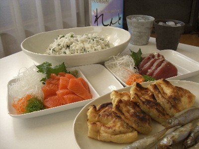 ばし子は刺身を切って盛り付けて、ご飯を具材と混ぜて盛り付けただけ(笑)