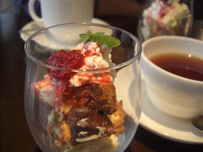 グラス入りのデザートとお茶♪