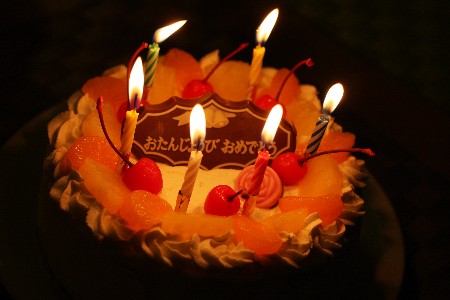 そして、灯りを消して、ケーキの登場~
