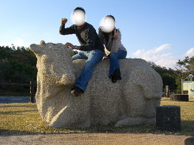 海辺の芝生で根っ転んで昼寝したり、牛のオブジェに乗っかってみたり。。。