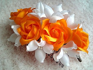 色の配置バランスを考えながら、クシに針金で巻きつけたり、