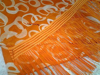 ブヒで、食後は今日の目的。シージョにフリンジを縫い付ける作業!