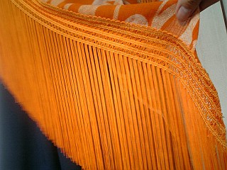 で、食後は今日の目的。シージョにフリンジを縫い付ける作業!