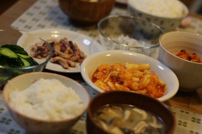 夕飯はとっても節約メニューだったので、2人分で383円で済みました