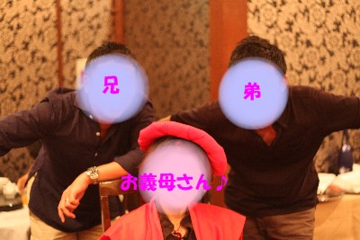 お義母さんを息子2人が囲み、記念撮影。