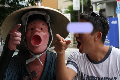 お店の入り口にあった、『やじきた』と共にオモローな記念撮影