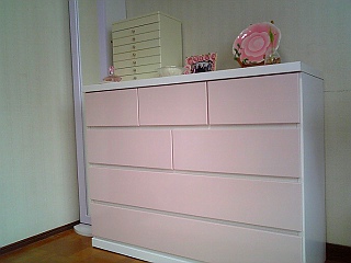 あたしのバラ部屋にベビーピンクのチェストが加わりました