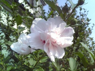 去年は白い花を付けて感動したんだけど、今年は微妙にピンク色のお花が咲きました!