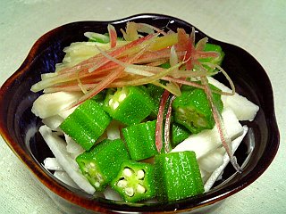 元気モリモリのネバネバ盛り(山芋・オクラ・みょうが ポン酢でいただきます)