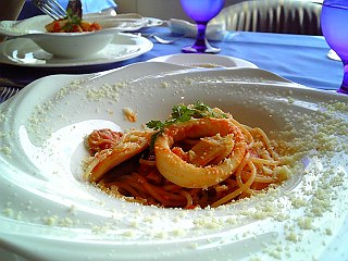 トマトソースの海鮮パスタ