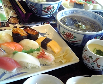 とんでんで寿司と蕎麦のセット。蕎麦ツユがちょっと薄かったですが(笑)