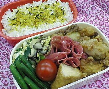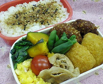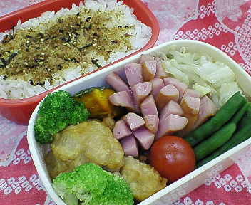 寝坊気味でソッコー作ったから、色気なし弁当です(笑)