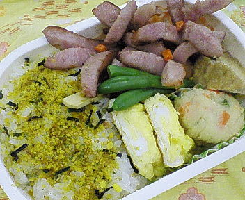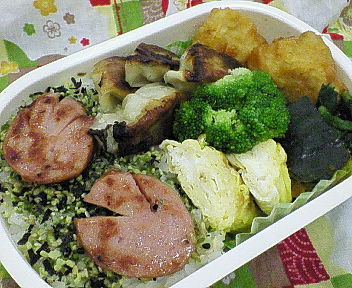 ご飯を冷まして、冷凍食品をチンして冷まして、あとは詰めるだけ。楽ちん♪