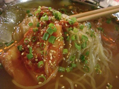 れいめ~ん♪麺は固くてゴムみたいで、これぞ冷麺!って感じ。