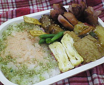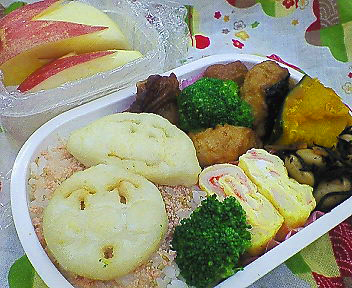 ということで、今日も作ってきましたよ。昨日の夕飯の残りものが半分、手作りが半分。