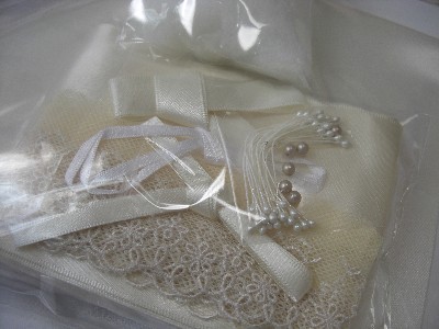 ブライダル下着の手洗いと、幸せのおまじない、サムシングブルーのリボン縫い付け