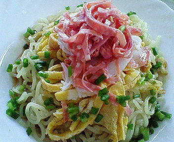 さっき、朝ごはんと昼ごはんを兼ねて、冷し中華を作りました。