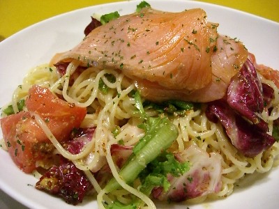 で、美味しいものも食べちゃいました! 『炙りサーモンと夏野菜のマスタード風冷製カッペリーニ』