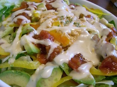 メキシカンサラダ】・・・手で裂いたチキンと豆類とアボガドと野菜を混ぜ混ぜして食べました。【