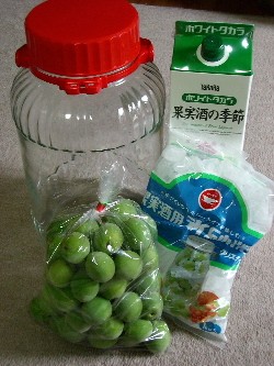 空瓶(5ℓ用)・ホワイトリカー(1800ml)・角砂糖(500g)・青梅(1kg)で¥2,500でした。